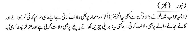 اور اگر دیکھے کہ اُس پر بہت سے زنبور جمع ہیں دلیل ہے کہ۔ وہ کمینے لوگوں میں گرفتار ہو گا۔ خاص کر اگر زنبور نے اس کے ڈنک بھی مارا ہو گا ۔ َ
