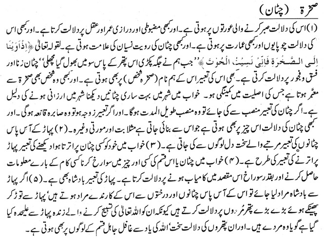 اور اگر تعبیر زوجہ ہو تو وہ صابرہ قانعہ ہوگی ۔ اور کبھی چٹان کی دلالت اس چیز پر بھی ہوتی ہے جو اس سے بنائی جاتی ہے مثلا بت اور مورتی وغیرہ ۔