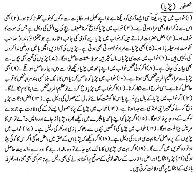 khwab mein chirya dekhna khwab mein chirya dekhna