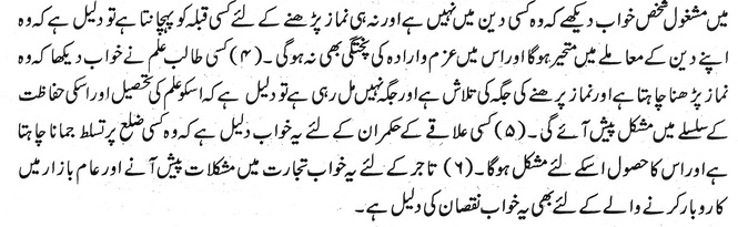 کسی طالب علم نے خواب دیکھا کہ وہ نماز پڑھنا چاہتا ہے اور نماز پرھنے کی جگہ کی تلاش ہے اور جگہ نہیں مل رہی ہے تو