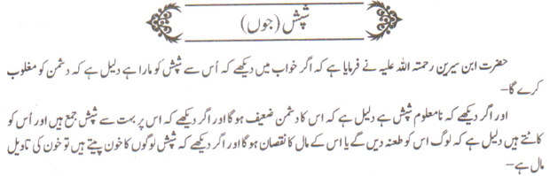تو اس کی تعبیر بھلائی اور نعمت اور برکت اور تمام غموں سے خلاصی سے کی جاتی ہے۔ اور بہت سے جو دیں دیکھنا طویل مرض اور نفاق اور فقر کی دلیل ہے۔ اور ان کو قتل کرنا غموں سے نجات اور جس تختی میں مبتلا ہے اس سے خلاصی کی دلیل ہے۔