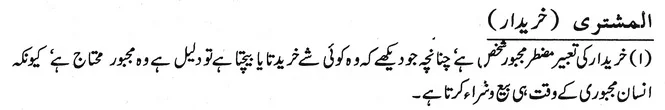 خریدار کی تعبیر مضطر مجبور شخص ہے چنانچہ جو دیکھے کہ وہ کوئی شے خریدتا یا بیچتا ہے تو دلیل ہے وہ مجبور محتاج ہے، کیونکہ انسان مجبوری کے وقت ہی بیع و شراء کرتا ہے۔