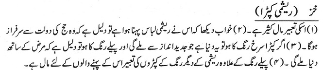 خواب میں ریشم کا کپڑا زیب تن کرنا کسی خوبصورت کنواری لڑکی سے شادی کی بشارت ہے۔