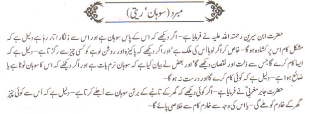 حضرت ابن سیرین رحمتہ اللہ علیہ نے فرمایا ہے۔
