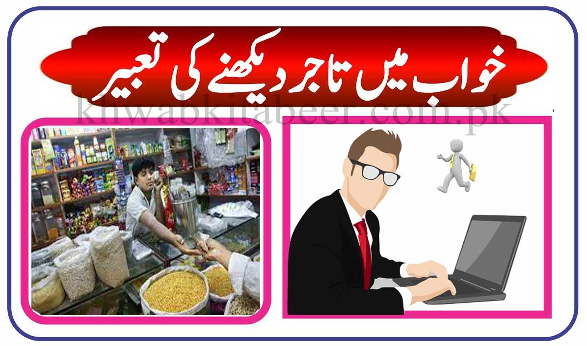 خواب میں تاجر کو دیکھنا یا خود کو تاجر بنتا دیکھنا اور اس کی معیشت اختیار کرنا۔ جھوٹی قسم کھانے اور نماز چھوڑ نے ناپ تول میں کمی کرنے۔ اور سود کھانے اور ناپاک ہونے کی دلیل ہے۔