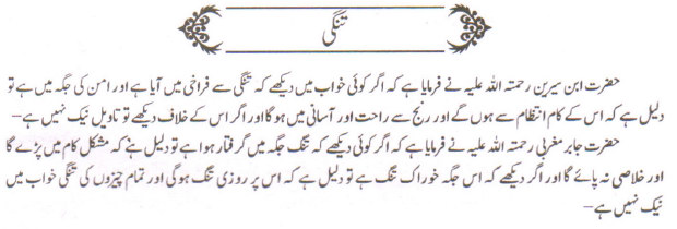 اور اگر دیکھے کہ اس جگہ خوراک تنگ ہے تو دلیل ہے کہ اس پر روزی تنگ ہوگی اور تمام چیزوں کی تنگی خواب میں
