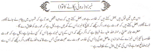 اور اگر دیکھے کہ کانچ کا خبزہ اُس کے گھر میں ہے دلیل ہے کہ عورت کو طلاق دے گا۔