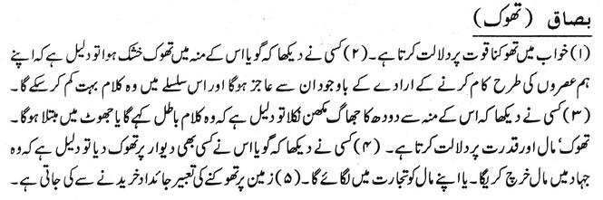 خواب میں تھوکنا قوت پر دلالت کرتا ہے۔