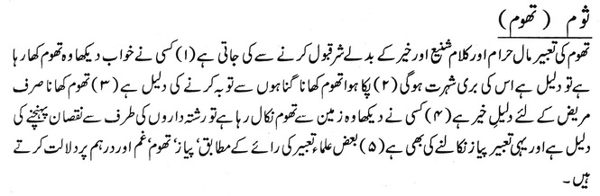 کسی نے خواب دیکھا وہ تھوم کھا رہا ہے تو دلیل ہے اس کی بری شہرت ہوگی
